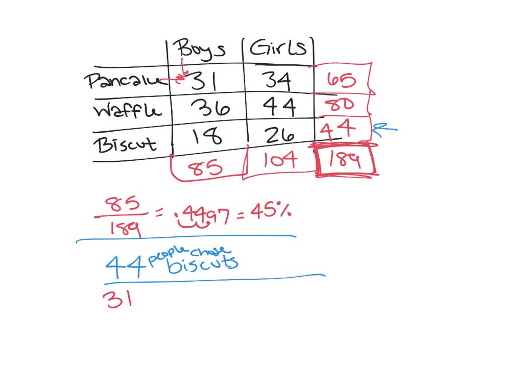 Solved Brainliest Bovs Girls Pancake 31 34 Waffle 36 44 Biscuit 18 26 What Of Everybody That Was Surveyed Were Boys For Many Mere Borained Pancakes Than Boretho Jiked Biscuits What