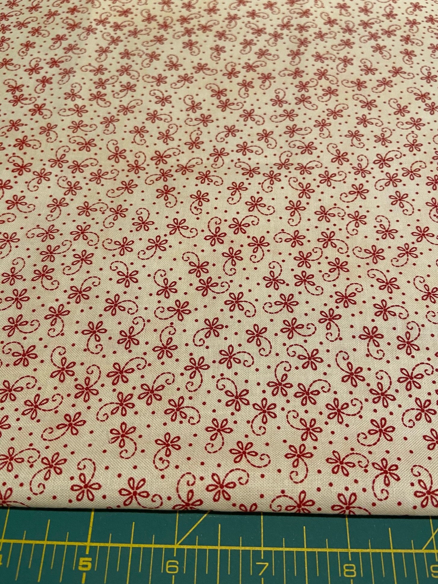 Red Work Floral Fabric Fat Quarter Only Etsy